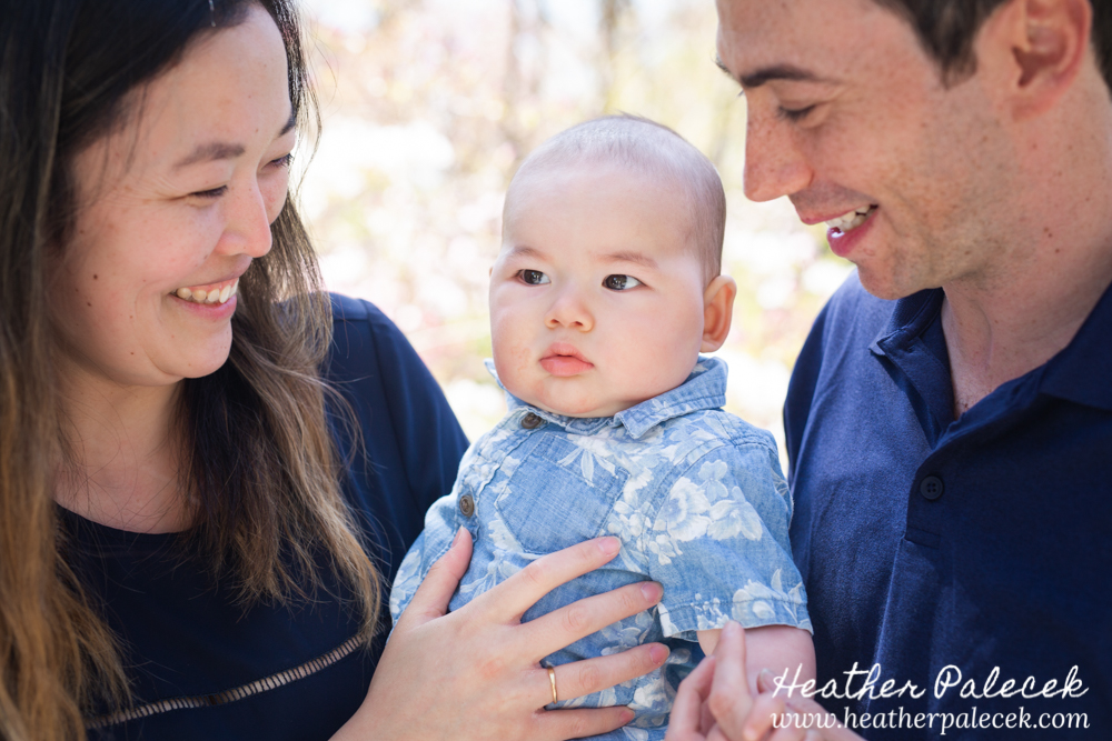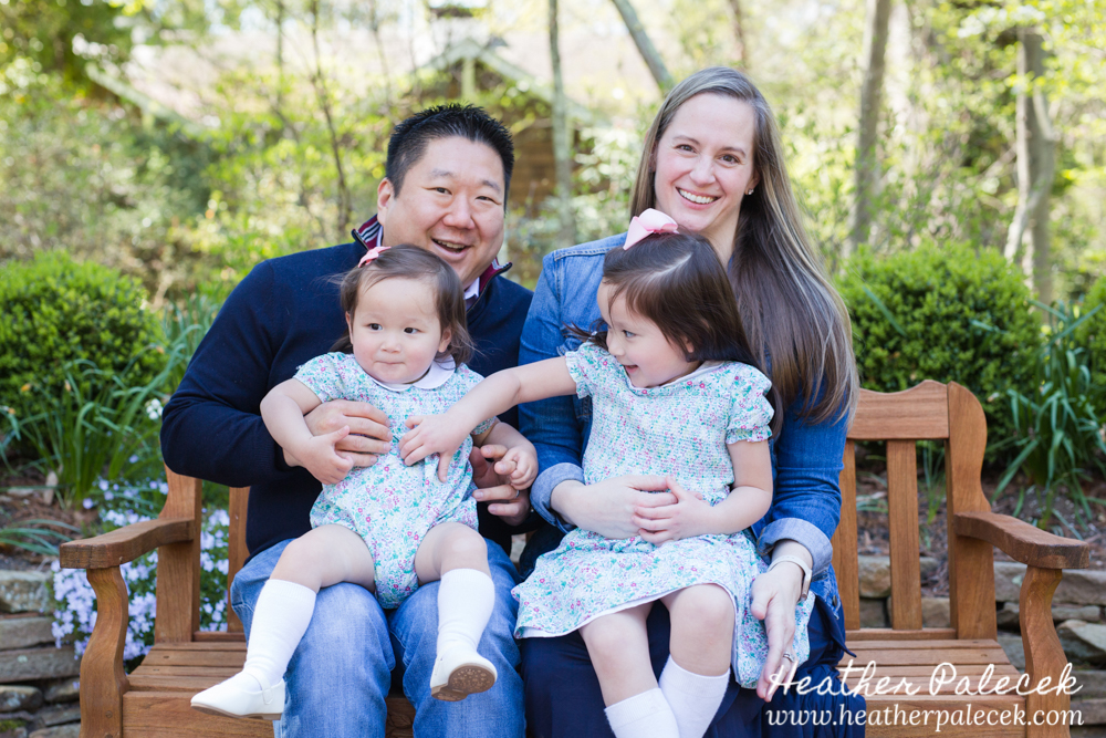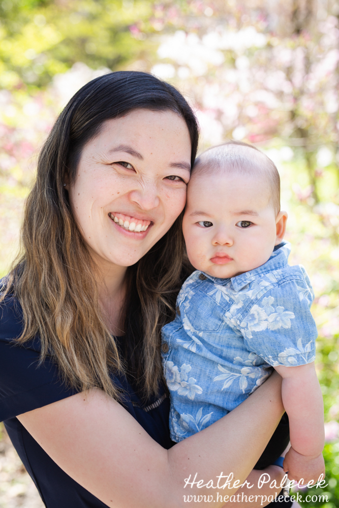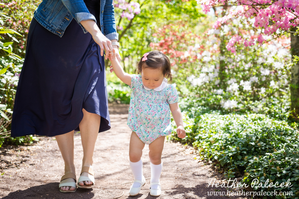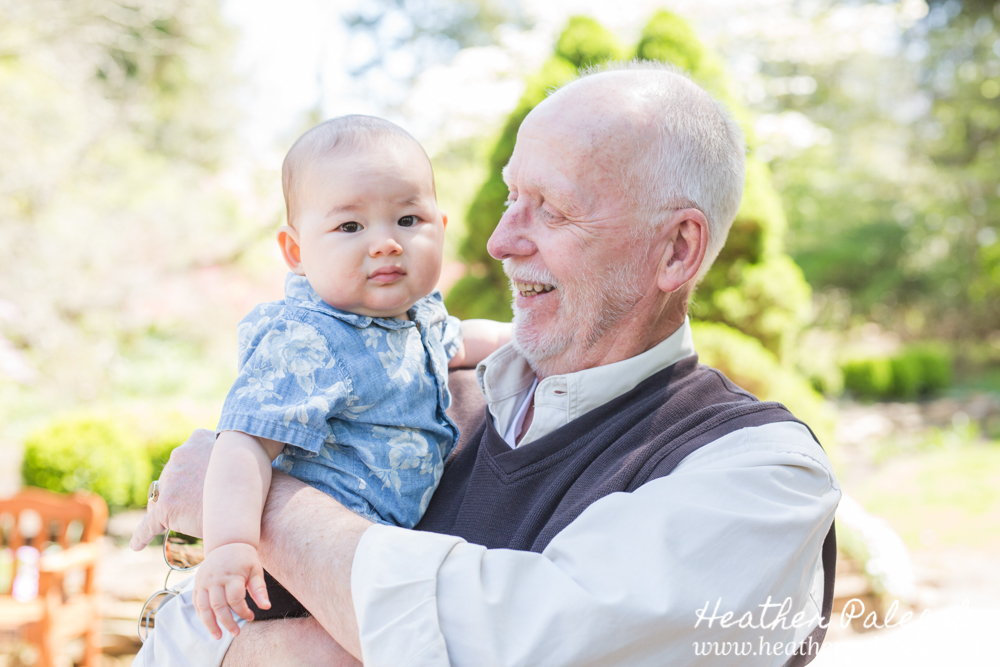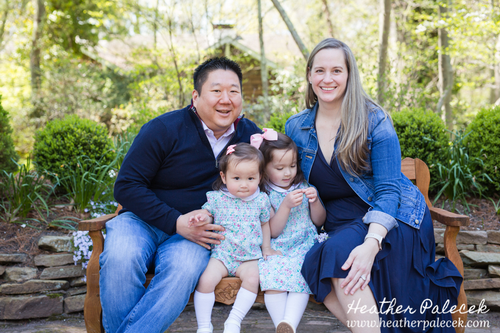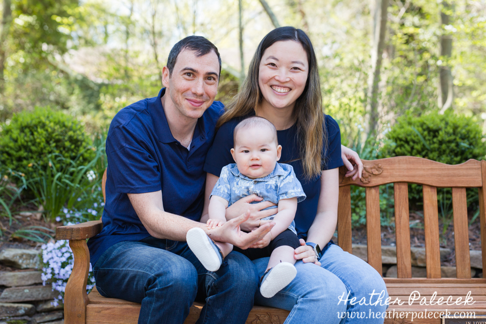 Her daughter and I worked to plan out the portrait session together. She chose Sayan Gardens in Hamilton, NJ as the location because it had special meaning to their mom and they haven’t been there as a family in many many years. We picked a great day to get together too, right before mothers day as the azaleas were in bloom, with perfect weather and bright sun! The whole family wore shades of blue within their outfits that really complimented one another and contrasted well with the bright pink flowers and green leaves in every background.