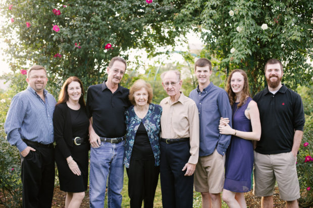 Here we are, in the outfits I picked out. We coordinated without matching; the modern way to take family photos. I chose a color scheme of blues, tans, and blacks, with my grandmother wearing a pattern so she stands out the most. {Photo by Emily Plank Photography}